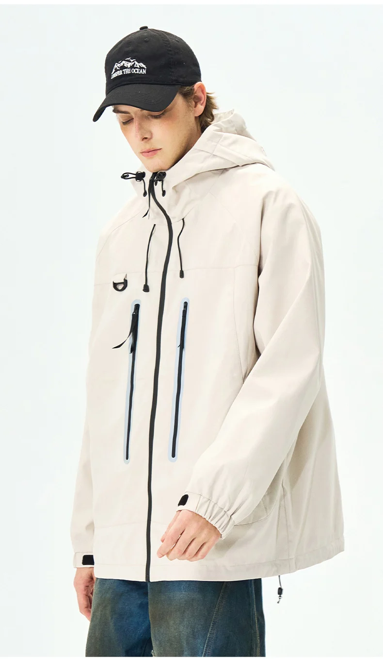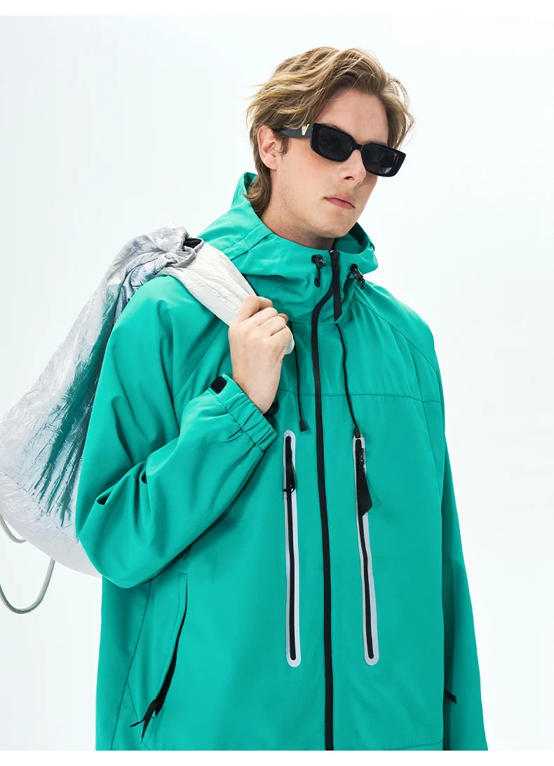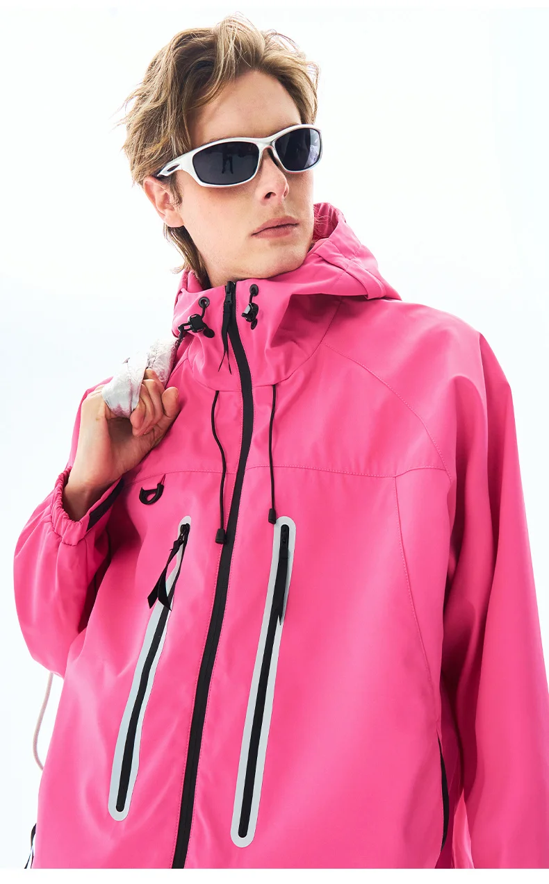 Spring Men Jacket Hooded Waterproof Fashion Reflective Windbreaker Men Outdoor Camping Casual Pink Autumn Jacket Windproof Coats