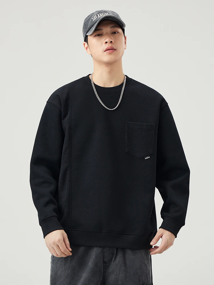 Heavyyweight Chest Pockets Sweatshirts Men Korean Fashion Patchwork Street Oversized Pullover Hoody Tops