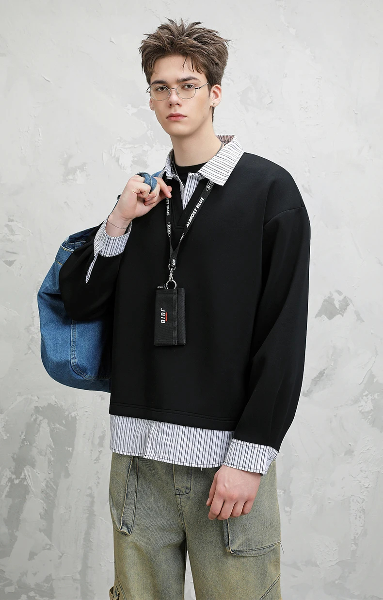 Workplace Style Sweatshirts Boy Fake Two-Piece Design Blouse Male American Style Long Sleeve Top