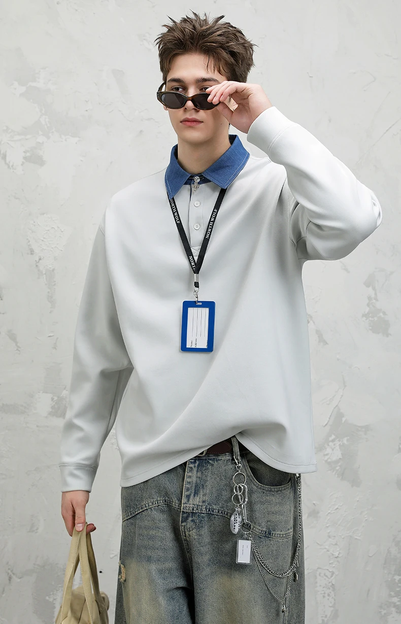 Oversized Streetwear Fake Two-piece Long-sleeved High Street Loose Lapel Male Pullover